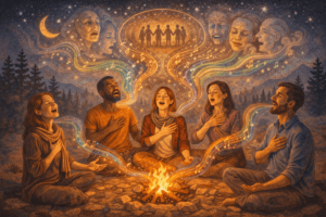 Le Son est une vibration , le chant intérieur personnel libère et on ose se poser: prendre sa place. On ose vibrer son son intérieur avec les autres dans un cercle de bienveillance ou un travail de connaissance de soi profond émerge.